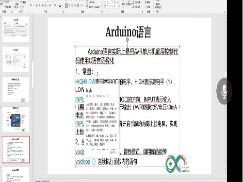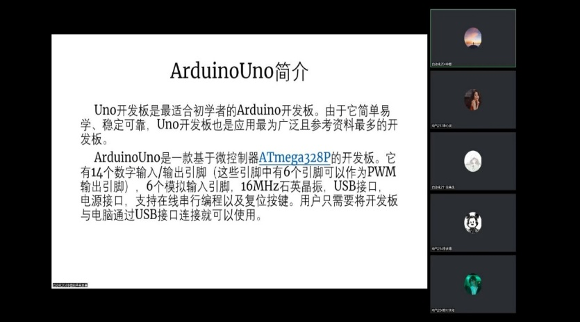 接着,申傲学长讲解了Arduino语言的实际作用、Arduino主要的几种函数,并用真实的案例和线上操作为大家展示在实际运用中的基本的常识和重要技巧,同时分享自己在运用中所犯的错误为大家提供参考,为参赛队员积累了宝贵的经验。