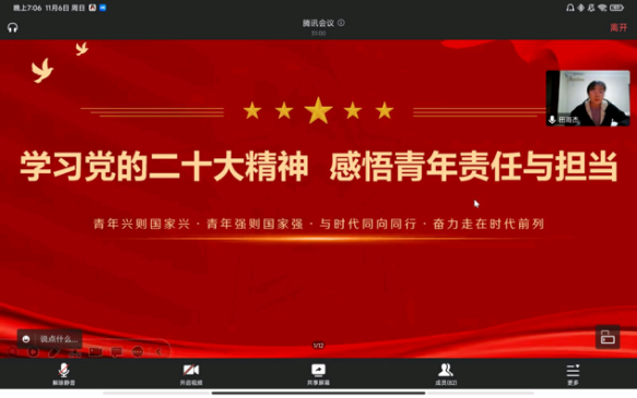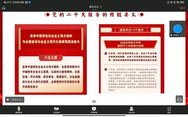 2022年11月6日晚19点,威廉希尔足球以线上腾讯会议的方式开展了第52期入党积极分子党课培训第三讲。本次培训邀请到了学院纪委书记、经理助理、员工工作负责人田雨杰老师开展主题为“学习党的二十大精神,感悟青年责任与担当”的专题授课。