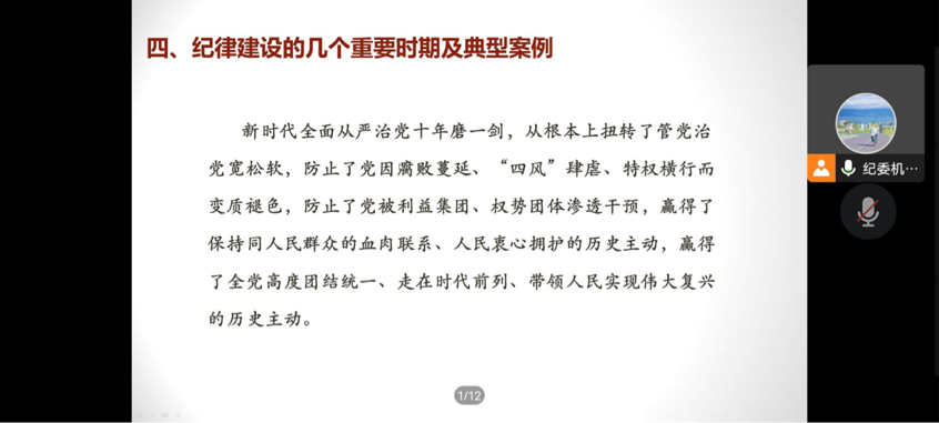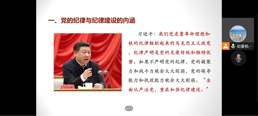 11月15日晚19点,威廉希尔足球通过线上腾讯会议的方式开展了第52期积极分子党课培训第七讲。本次党课很荣幸邀请到了威廉希尔足球学校纪委工作处董力老师为入党积极分子讲授,主题为“中国共产党纪律建设史”。